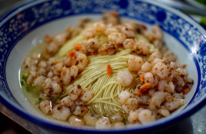 三虾面,就是把虾子、虾脑、虾仁三种虾身上最好的东西,经过烹饪,作成浇头,其制作过程很繁琐,味道真是鲜得眉毛掉下来。在苏式汤面中,三虾面属于比较高大上的吃法,每年夏天的时候上市,仅有限的几个面馆供应(如裕兴记),而且价格不菲。